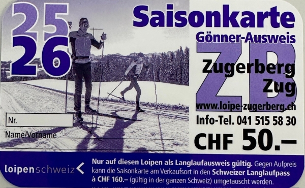 Sie unterstützen uns mit ihrem Gönnerbeitrag bei unserem Wirken für attraktive und gepflegte Loipen auf dem Zugerberg. Weniger